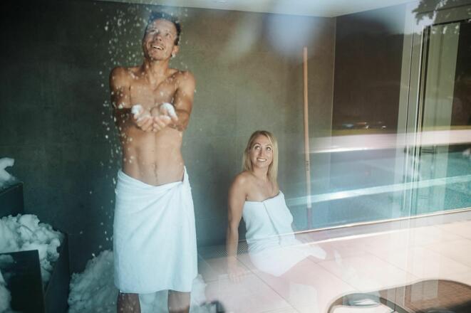 Schneeaufguss mit baumigen Aromen in der Eventsauna im Kärntner Badehaus:
