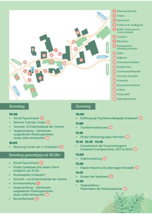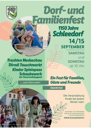 Das diesjährige Dorf- und Familienfest Schleedorf findet wieder unter der tatkräftigen Mithilfe aller Schleedorfer Vereine statt. Am Samstag, den 14. September und am Sonntag, den 15. September wird den Besucher:innen ein breites Veranstaltungsprogramm geboten. Vom weit über die Gemeindegrenzen bekannten und überall beliebten Schleedorfer Dirndltauschmarkt, über die Wimmer Trachtenmodenschau bis zum Schaubewerb der Feuerwehrjugend und vielen musikalischen Genüssen - für Groß und Klein ist etwas dabei. Neu sind dieses Jahr auch Veranstaltung wie die "Vergewandlung", wo aus alten Kleidungsstücken Neues entstehen darf, oder aber die Jodelvorstellung sowie die Kräuter-Hexerei inklusive Leiterwagerl-Akrobatik. Und auch für die Kleinsten gibt es in diesem Jahr mit dem Spielepass wieder viel zu entdecken und zu erleben.