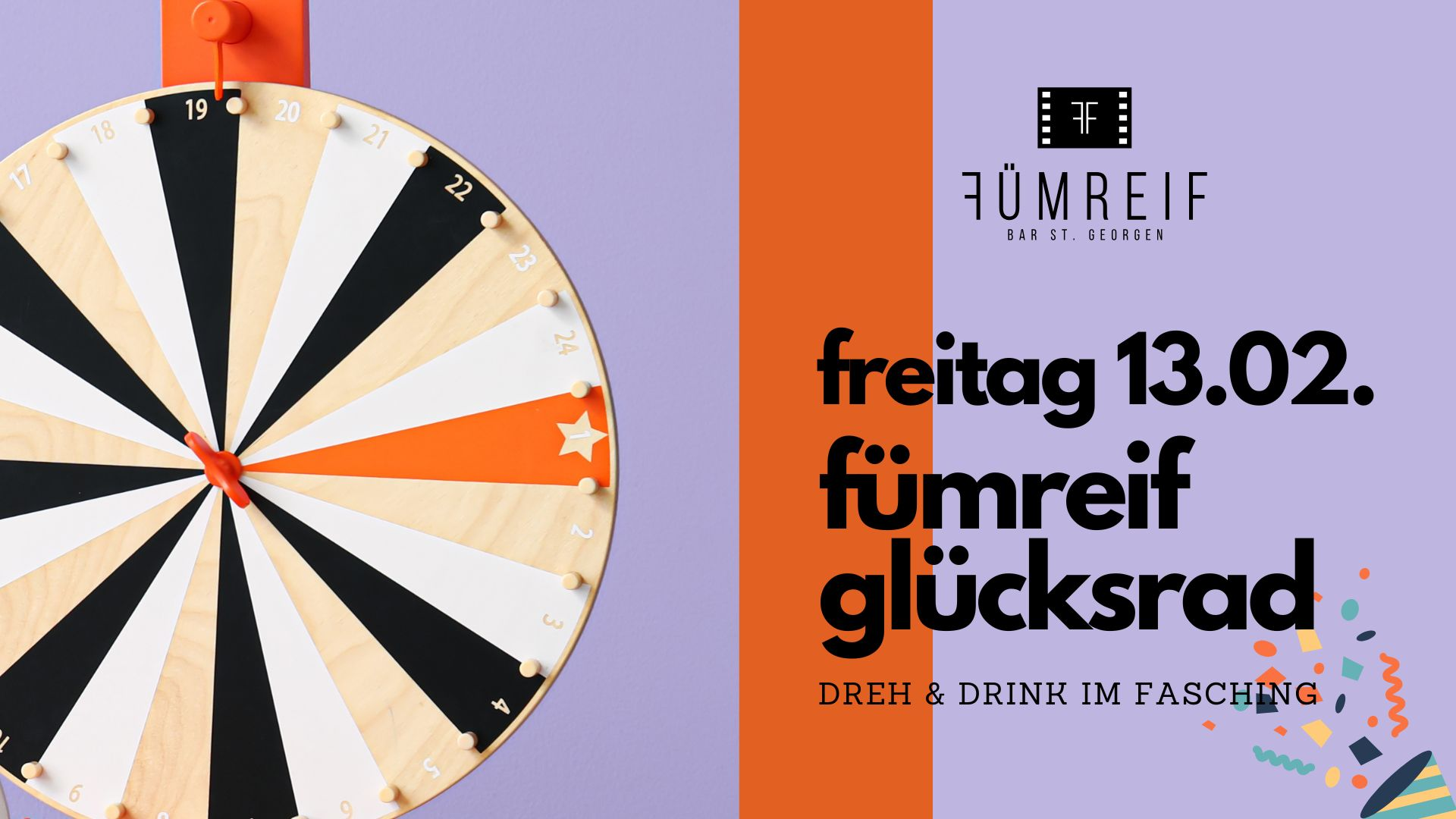 DREH & DRINK im Fasching!Versucht euer Glück uns sichert euch Getränke & Goodies am Fümreif-Glücksrad.