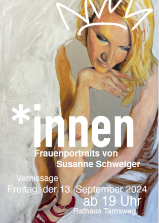 Die Ausstellung "*innen", die vom 13. SEptember 2024 bis Februar 2025 Rathaus Tamsweg stattfindet, widmet sich aktuellen Genderdebatten, dem Kampf um Frauenrechte und simplen Freude am Frausein. Susanne Schweiger präsentiert in dieser Ausstellung eindrucksvolle Frauenporträts, die Geschichten über Beziehungen, Familie und den Mut, neue Wege zu gehen, erzählen. Es sind Erzählungen von Frauen, die ihre Ideen verwirklichen und neue Möglichkeiten schaffen - selbstbestimmt und stets offen für Neues.