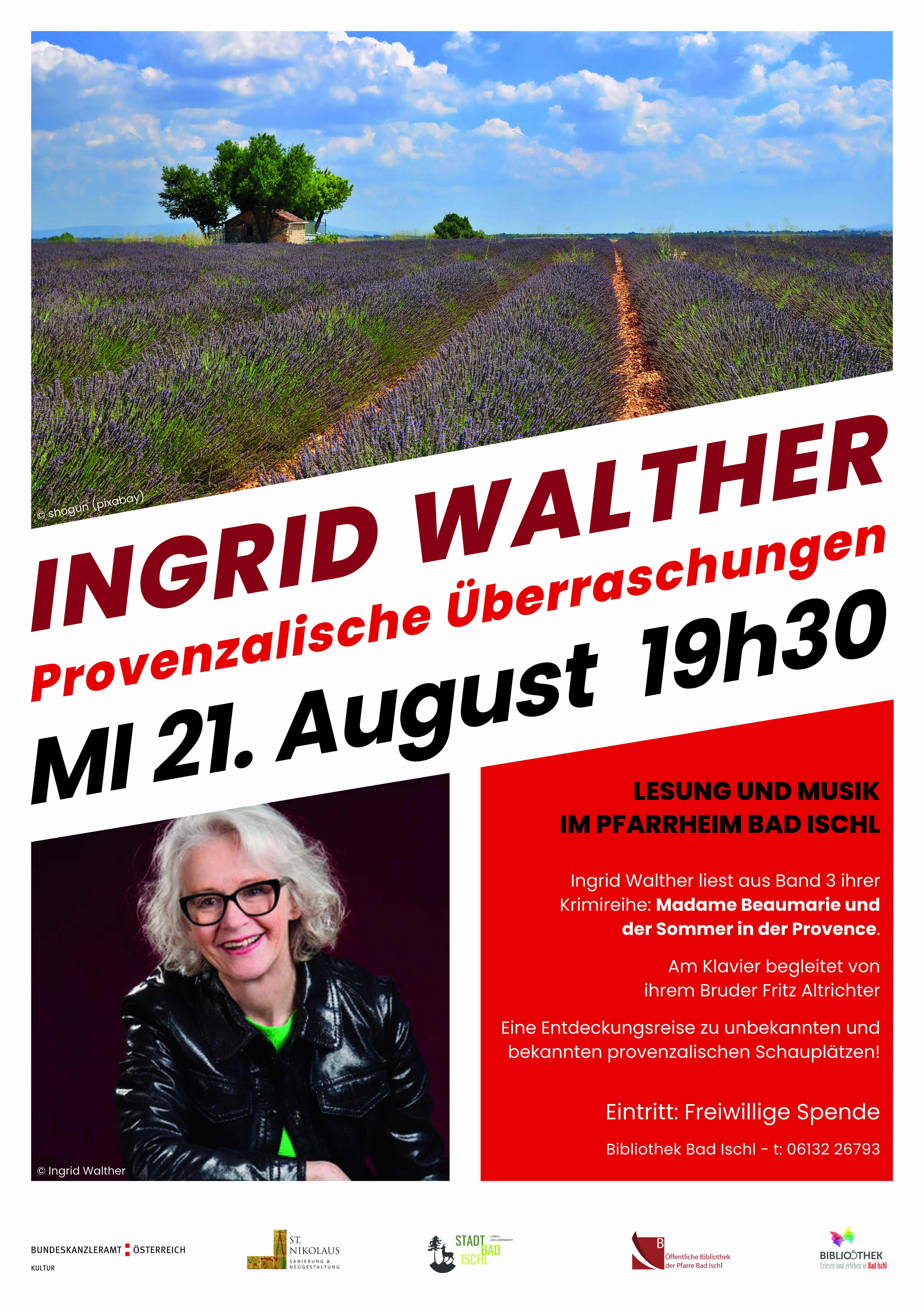 Ingrid Walther liest aus Band 3 ihrer Krimireihe: Madame Beaumarie und der Sommer in der Provence.