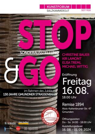 Die Mitglieder Christine Bauer, Elisa Treml, Kir Lamont und Michael Wittig vom Kunstforum Salzkammergut gestalten die Sonderausstellung „STOP & GO“ vom 16.8. bis 01.09.2024 in der Remise 1894 in Gmunden mit abstrakten Arbeiten in verschiedenen Techniken und mit unterschiedlichen Materialien, die mit dem Ort und dem Thema Mobilität korrespondieren.