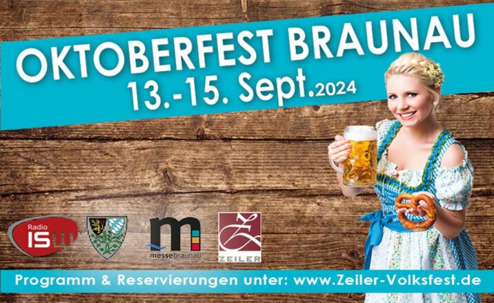 Im Mittelpunkt steht bei uns immer der Gast und die hohe Qualität bei der Bewirtung der Besucher. Ob deftige Brotzeiten, Wies´n-Hendl oder Schweinshaxn: Unser Anspruch ist, Ihren Besuch auch für den Gaumen zum Erlebnis werden zu lassen. Und zum Gaumenschmaus gibt’s den Ohrenschmaus mit wechselnden Spitzenbands und besonderen Programmangeboten für Alt und Jung. Zeiler's Volksfeste sind gesellschaftliche Ereignisse, die zur Tradition und zu einem festen Fixpunkt im Jahreslauf der Festivitäten werden. Wie es bei uns der Brauch ist, steht der Wirt an der Schänke und die Wirtin am Schmankerlstand beim Essen. Die Herbstmesse und das Oktoberfest sind längst ein beliebter Fixpunkt im Braunauer Veranstaltungsjahr. Das erfolgreiche Konzept mit einer ausgezeichneten Mischung aus hochwertiger Information und bester Unterhaltung zieht jedes Jahr aufs Neue Tausende von Besuchern an und macht Braunau zum Messezentrum der Region mit grenzüberschreitendem Charakter.