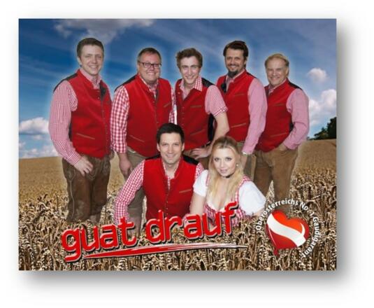 ► 20:00 Uhr: Großer Festabend auf dem Oktoberfest Braunau mit der Kultband GUAT DRAUF – Gaudi in der Lederhosen aus Oberösterreich! Der Name ist Programm: Volkstümliche Musik und Schlager machen den Anfang und zu bekannten Stimmungshits geht die Party richtig ab. Dazu kommen Klassiker der Musikgeschichte von Tina Turner bis AC/DC. GUAT DRAUF hat die Party-Garantie und beweist das regelmäßig auf allen großen Zeltfesten in Oberösterreich und darüber hinaus. Eintritt frei!