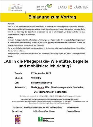 Einladung zum Vortrag „Ab in die Pflegepraxis - wie stütze, begleite und mobilisiere ich richtig?“