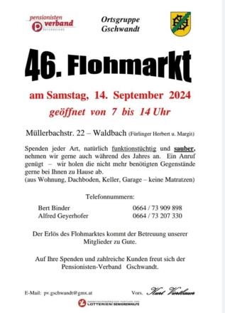 Auf zum 46. Flohmarkt des Pensionsitenverbandes Ortsgruppe Gschwandt