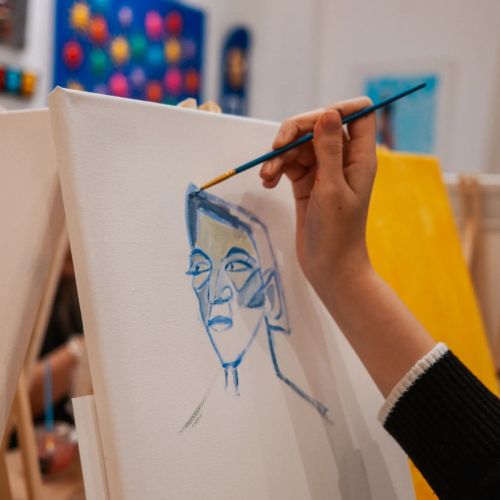 Bei Drinks und kleinen Snacks können Besucher*innen in entspannter Atmosphäre gemeinsam mit dem Künstler Dino Pearl und dem Team der Galerie Dumas kreativ werden und eigene Werke entstehen lassen.