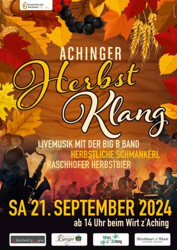Der Achinger Herbstklang bietet herbstliche Schmankerl, dazu Raschhofer Herbstbier. Unterhalten werden sie von der BIG B BAND mit Livemusik.