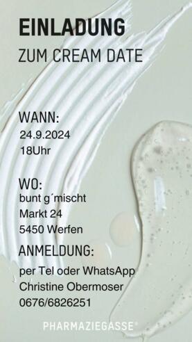 Einladung zum Cream Date im bunt g'mischt, 24. September 2024, 18:00 Uhr