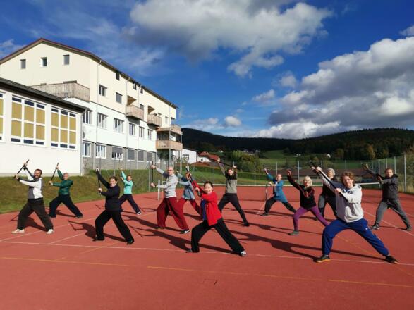 TaiJi Quan Stock Drachen & Tiger ist eine weitere und anspruchsvollere Stockform und beinhaltet Stockkampftechniken in der runde und symetrische Bewegungen, wellenartige und umwickelnde Techniken vorkommen.