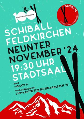 Der SCHIKLUB FELDKIRCHEN in KÄRNTEN goes 100 - ein Jubiläum - das mit einer Neuauflage des groß gefeiert wird! Die Ballgäste dürfen sich auf Musik bis in die Morgenstunden mit der Band Major 7 und einer Tombola mit erstklassigen Preisen freuen!