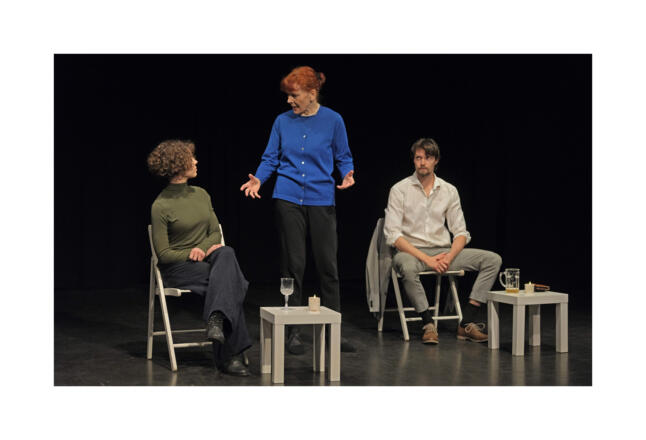 Im hoch spannenden Stück „Kreisel“ von Anna Funk zirkuliert alles um die Fragen, ob wir in unserer heutigen aufgeheizten Gesellschaft in der Lage sind, unsere Differenzen zu überbrücken, ob wir ein offenes Ohr für die Argumente und Perspektiven des Gegenübers haben. Aber es geht auch darum, dass in der Reibung eine Chance besteht. Wie viel Empathie und Verständnis, Güte und Nachsicht sind für ein gelungenes Miteinander nötig?