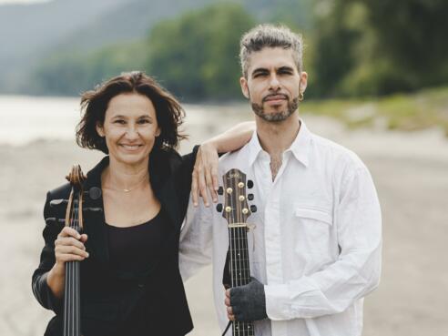 Fängt mit Samt an, hört mit Samt auf: nach der „Velvet Revolution“ am Freitagabend präsentiert das Duo der Cellistin Asja Valcic, früher oft mit dem Akkordeonisten Klaus Paier zu hören, mit Bass-Ukulele-Spieler Raphael Preuschl am dritten Jazz-Tag sein Programm „Velvet“. Warm, erdig und vor allem tief klingen die Töne dieser kammermusikalischen Zweierbesetzung, die jetzt bereits im fünften Jahr besteht und deren Kompositionen von „Timeless“ über „Madness“ bis zu „Désir“ oder „Trance“ reichen. Die beiden Saiten-Instrumentalisten faszinieren mal unisono, mal begleiten sie sich bei solistischen Höhenflügen, „mal zart und innig, mal leidenschaftlich und virtuos, das Ergebnis wirkt so samtig wie der Titel schon suggeriert“.