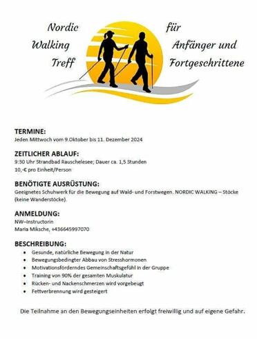 Geeignetes Schuhwerk für die Bewegung auf Wald- und Forstwegen. NORDIC WALKING – Stöcke (keine Wanderstöcke).