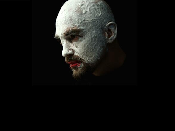 Weisser Mann:Faust ist eine One-Man-Show. Der Schauspieler Max Pfnür spielt Goethes Faust. Eine Koveranstaltung mit 'Theater der Mitte'.