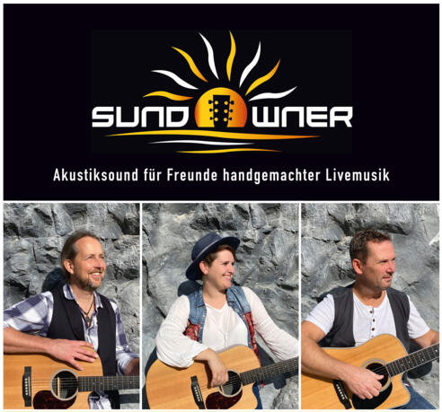 Sundowner besteht aus Markus, Maggie und Tom aus dem Landkreis Rosenheim.Die drei verbindet die Leidenschaft für handgemachte Musik mit allerlei Saiteninstrumenten (Gitarren, Akustikbass, Fiddle, Mandoline), gepaart mit dreistimmigem Gesang. Gute Coversongs mit viel Gefühl, verstärkt und manchmal auch unverstärkt.