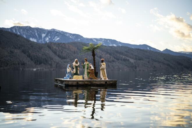 Ein ganz besonderes Highlight erwartet Sie direkt am See: die schwimmende Krippe, die in stimmungsvoller Kulisse für besinnliche Momente sorgt.