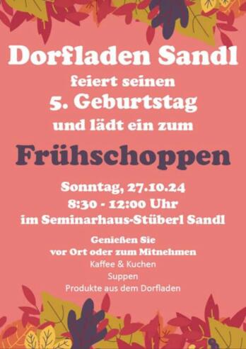 Der Dorfladen/Schatzkammer Sandl feiert seinen 5. Geburtstags und lädt ein zum Frühschoppen