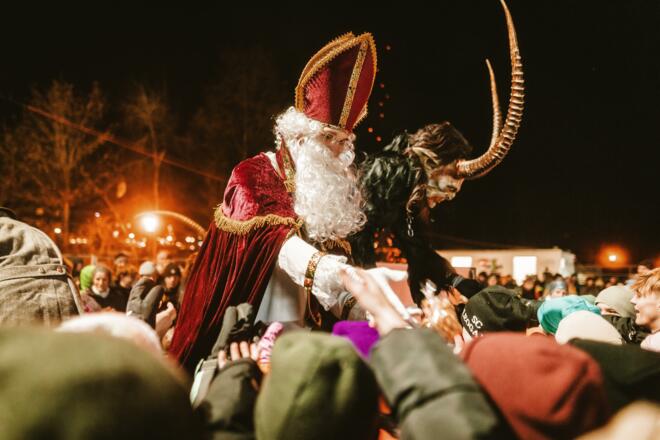 Erst zaubert der Nikolaus den Kindern ein Lächeln ins Gesicht, dann tobt das feurige Treiben der Passen.