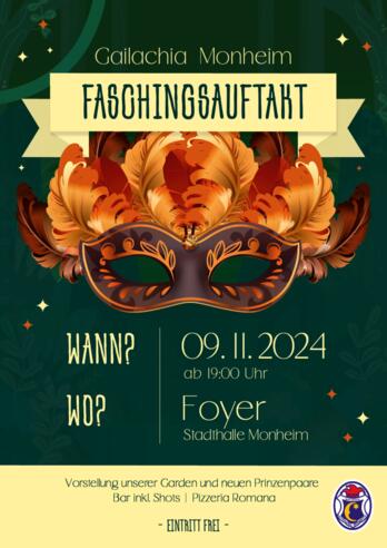 Faschingsauftakt der Gailachia Monheim Vorstellung unserer Garden und neuen PrinzenpaareBar inkl. Shots / Pizzeria Romana Eintritt frei
