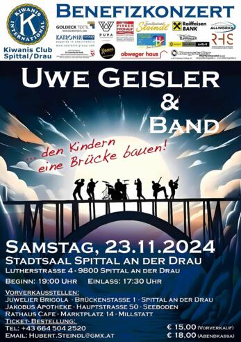Der „Geschichtenerzähler mit der Gitarre“ – der Baier Uwe Geisler – tritt mit seiner Band im Stadtsaal Spittal auf. Es ist ein Benefizkonzert zugunsten benachteiligter Menschen, die vom Kiwanisclub (KC) Spittal mit dem neuen Präsident Hubert Steindl unterstützt werden. Steindl und Geisler verbindet eine langjährige Freundschaft, aus der die Idee zu diesem Benefizkonzert kam.