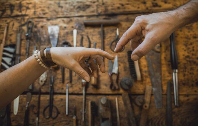 „OIS HONDGMOCHT" - Die HandWerkstatt“ im BioArt Campus in Seeham, vereint hochwertiges KunstHandwerk und traditionelle Werte. Jeden Freitag wird an der großen Werkbank live produziert.