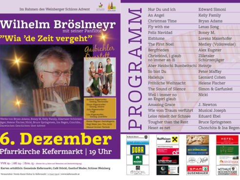 Preisinformation | Vorverkauf: 19,00 Abendkassa: 24,00 Ermäßigt: 15,00 Kartenvorverkauf:Gemeinde Kefermarkt 07947/5910Café StöcklGasthof MaderSchloss Weinberg |