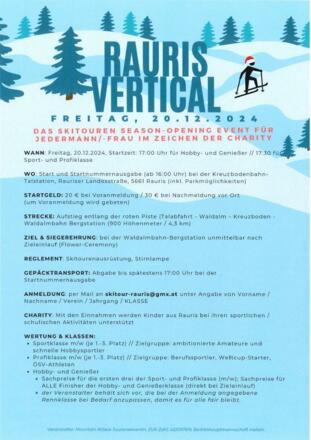 Skitouren-Charity Veranstaltung für Jedermann/-frau. Mit den Einnahmen werden Kinder aus Rauris bei ihren sportlichen / schulischen Aktivitäten unterstützt. 20€ bei Voranmeldung / 30€ bei Nachanmeldung. Anmeldung unter skitour-rauris@gmx.at.