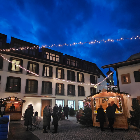 Erlebe den Zauber der Adventszeit mitten in Schruns! Unser Weihnachtsmarkt lädt Dich ein, die festliche Atmosphäre zu genießen. Entdecke die liebevoll dekorierte Häuschen mit regionalen Köstlichkeiten, handgefertigten Geschenken und weihnachtlichen Leckereien. Genieße den duftenden Glühwein und heißen Punsch unter funkelnden Lichtern.