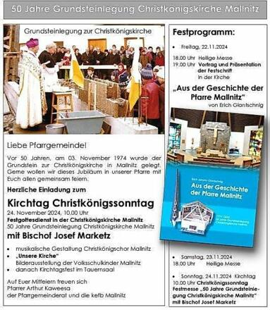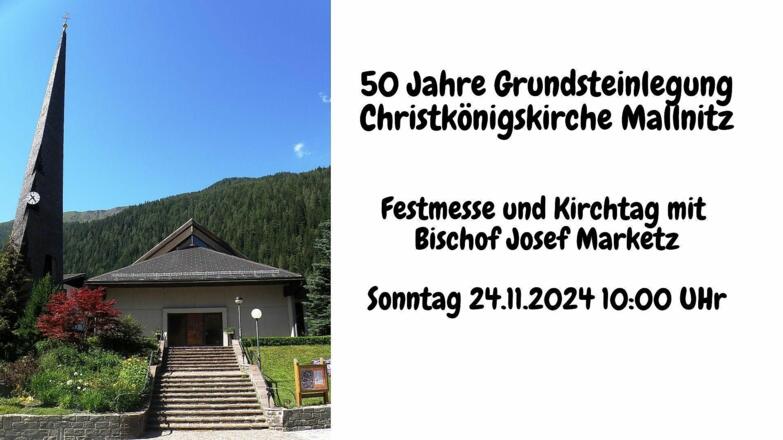 10:00 Uhr Festgottesdienst zum Jubiläum "50 Jahre Grundsteinlegung zur Christkönigskirche" in der Pfarrkirche mit Hrn. Bischof Josef Marketz.