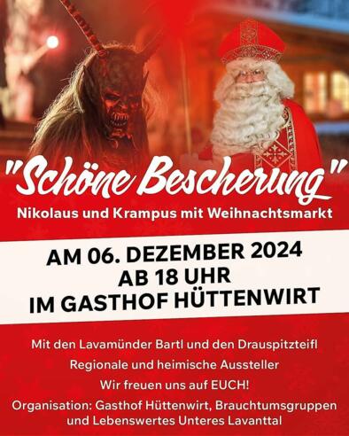 Nikolaus und Krampus mit Weihnachtsmarkt