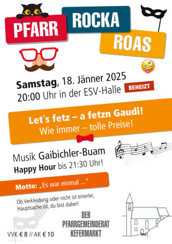 Komm zum Pfarrball - verkleide dich zum Thema: "Es war einmal ..." - hab Spaß - gewinne tolle Preise bei der Tombola - genieße die Musik!