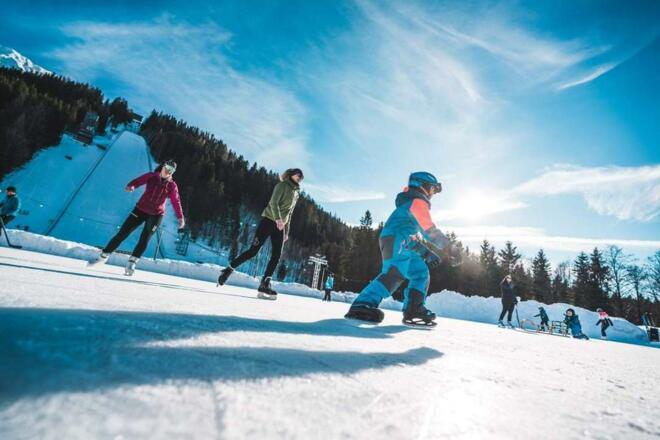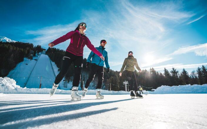 Eislaufen in stimmungsvoller Atmosphäre direkt am Fuße des Kulms. Mit warmen Getränken und kleinen Snacks versorgt der Kulm-Imbiss.