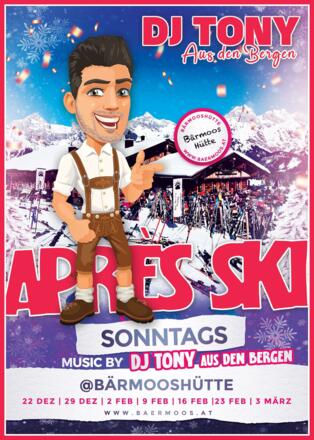 Hoch oben in den Alpen sorgt DJ Toni aus den Bergen auf der Bärmooshütte für unvergessliche Stimmung. Mit einer Mischung aus Alpenhits, internationalen Charts und Klassikern bringt er alle zum Mitmachen. Die Hütte, umgeben von einer traumhaften Bergkulisse, wird durch seine Musik zum lebhaften Treffpunkt. Seine Leidenschaft für Musik schafft eine einzigartige Atmosphäre aus Gemütlichkeit und Energie. Ein Besuch bei DJ Toni auf der Bärmooshütte ist ein Highlight für alle, die Natur und gute Laune lieben!