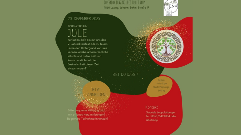Lerne den Hintergrund von Jule kennen, erlebe unterschiedliche Rituale und nutze Zeit und Raum um dich auf die Besinnlichkeit dieser Zeit einzustimmen!