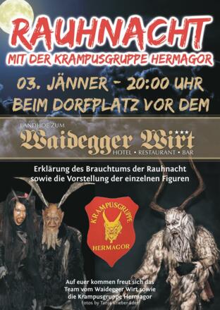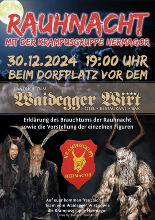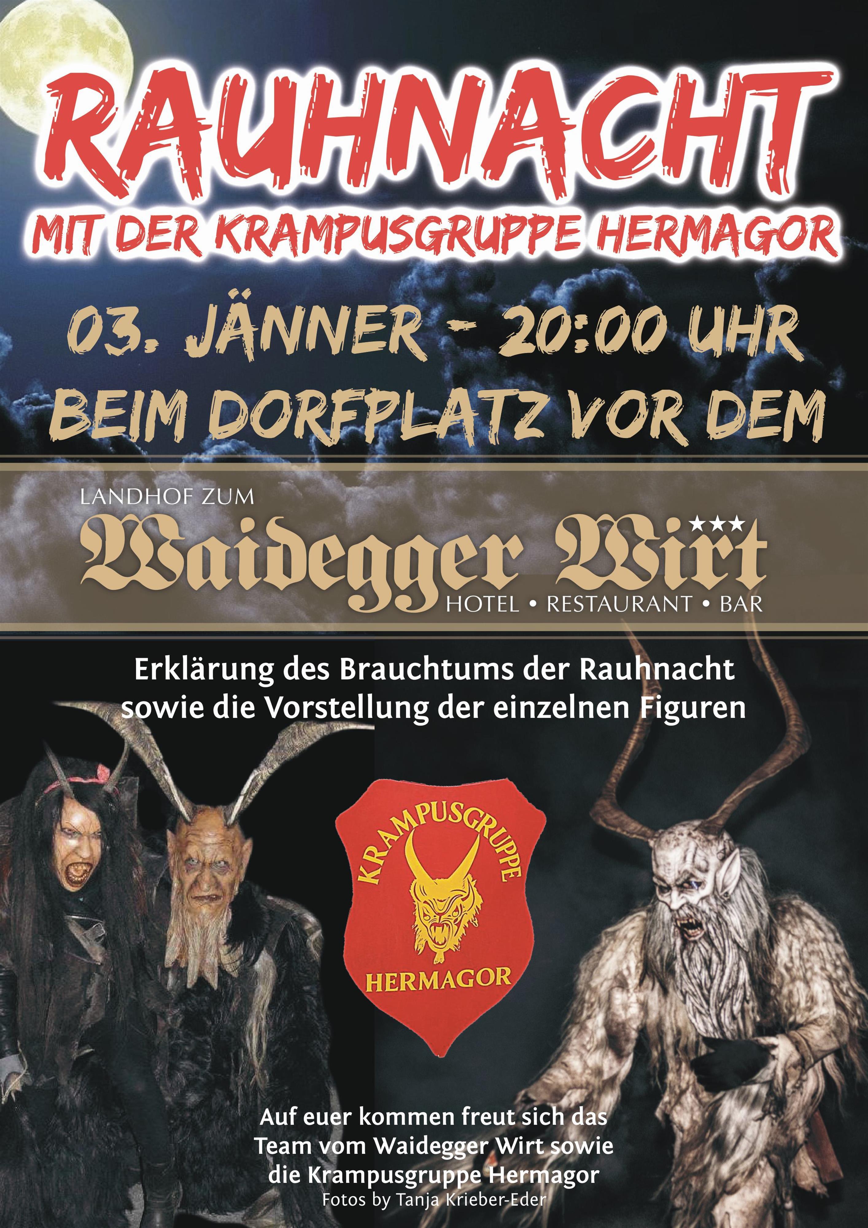 Auf Euer Kommen freut sich das Team vom Waidegger Wirt sowie die Krampusgruppe Hermagor.