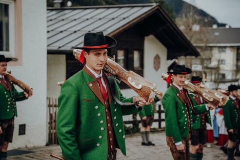 Die Filzmooser Prangerschützen begrüßen das Christkind.