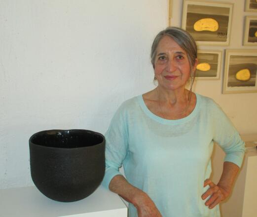 Mit ihren handgebauten, handverarbeiteten Keramikarbeiten bewegt sie sich von der Brotdose und Schale zur künstlerischen Wandpräsentation, vom Objekt „Weltpartikel“ zum Wasserkrug.