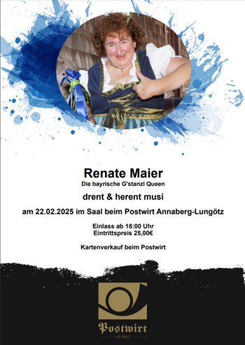 Die bayrische G´stanzl Königin Renate Maier kommt nach Annaberg!