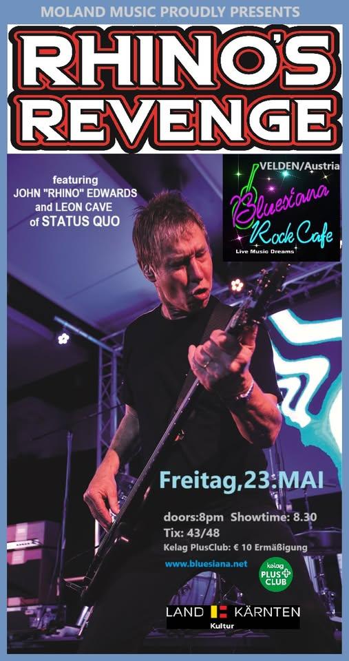 Aus zwei Alben unter eigenem Namen mit eigenem Material – und einem dritten aktuell in Entstehung – wird Rhino’s Revenge davon einiges live präsentieren, gemeinsam mit beliebten Status Quo Songs, die Rhino geschrieben oder mitgeschrieben hat, sowie einigen zeitlosen Rock-Klassikern und eine Spur von spontanen Überraschungen. „Ich mag es, mich und alle anderen zu überraschen und in der Hitze des Gefechts den einen oder anderen Song einzuwerfen, den wir noch nicht mal notwendigerweise geprobt haben“, meint er.