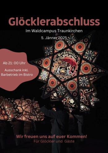 Zum Abschluß des Glöcklerlaufs in Traunkirchen treffen sich alle Passen noch einmal in einer Formation zum Singen im Forstpark Traunkirchen. Anschließend gibt es ein gemütliches Ausklingen im Bistro im Forstkampus.