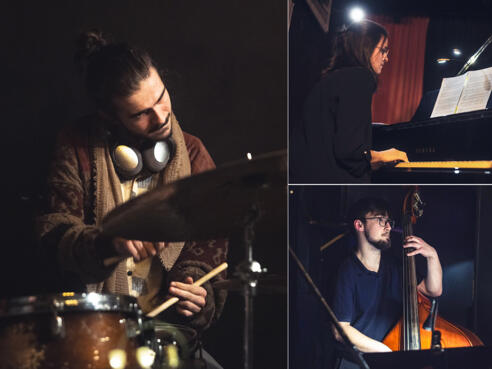 In Wien und Umfeld bereits bestens bekannt, spielt sich der 21-jährige Schlagzeuger Simon Kirchner durch die Bühnen Europas. Der junge Ebenseer (übrigens Enkel des Chefs der legendären Franz Kirchner Big Band), geht nun mit seinem Trioprojekt „Saltborn“ erstmals als Bandleader auf Tour. Gemeinsam mit der berühmt berüchtigten Pianistin Katarina Kochetova und dem Vorzeige-Musiker Tjan Šoštaric am Bass präsentiert sich eine junge Band, die vor frischem Sound gerade so strotzt. Das Programm besteht vorrangig aus Kirchners Eigenkompositionen und Arrangements, thematisch versucht der Schlagzeuger sich vor allem mit seiner Heimat, dem Salzkammergut, historisch und kulturell auseinanderzusetzen. Die Musikerinnen und Werke sind allesamt geprägt von toten und lebenden Meistern der Musik, während die Band mit offenen Ohren danach strebt, die energetischen Flammen der alten Jazzmusik zu wahren und auflodern zu lassen.
