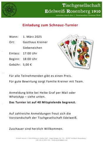 | Veranstalter-Adresse | Hauptstraße 1, 92237 Sulzbach Rosenberg, Deutschland |