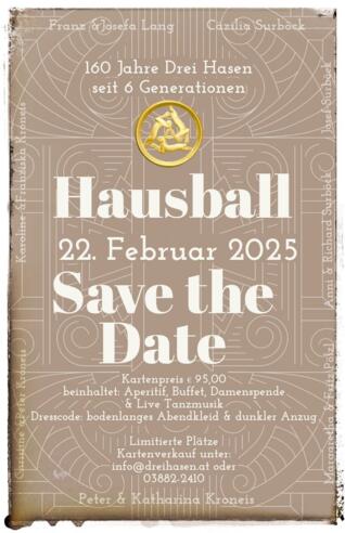 Das Hotel Drei Hasen lädt im Jubiläumsjahr zum 1. Hausball ein.