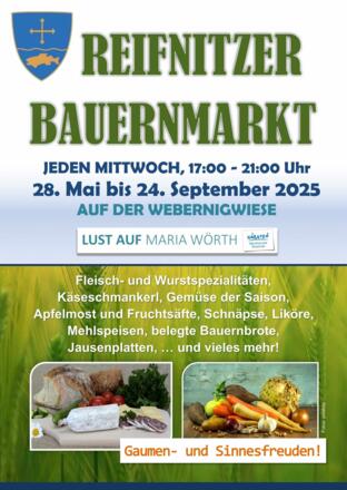 Entdecken Sie am Bauernmarkt die traditionellen "Kärntner Schmankalan", die von den Standlern selbst erzeugt werden. Meist finden Sie hier am Markt auch den Kärntner Honig in diversen Variationen, Schnitzerein und Kunsthandwerk sowie auch Süßes wie Kuchen und andere Mehlspeisen. Nicht fehlen darf natürlich der köstliche Most und Apfelsaft und selbstgebrannte Schnäpse und Liköre. Reifnitzer Bauernmarkt (Webernigareal) - immer mittwochs von 17:00-21:00 Uhr