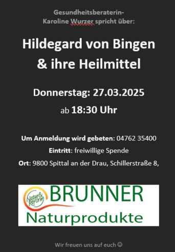 Um Anmeldung wird gebeten entweder per Mail: info@brunner-naturprodukte.at oder per Telefon: 0476235400.