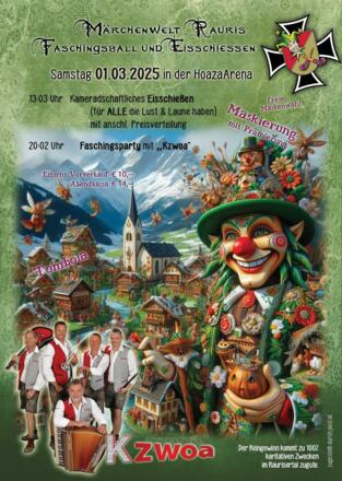 ab 20:02 Uhr Faschingsparty mit der Musikgruppe Kzwoa, Maskierung mit Prämierung, Tombola, Eintritt VVK € 10,-, Abendkassa € 14,-