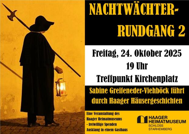Nach dem Nachtwächterlied erzählt Sabine Greifeneder-Viehböck in einem weiteren Rundgang Interessantes aus alten Haager Häusergeschichten. Begleitet wird sie von einem Nachtwächter.