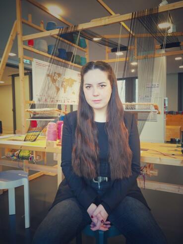 Die Spezialistin zeigt Geräte zum Weben und Spinnen und erklärt das Besondere der Dürrnberger Stoffe.