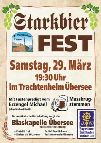 Mit Fastenpredigt vom Erzengel Michael (alias Michael Hartl) - Maßkrugstemmen; für musikalische Unterhaltung sorgt die Blaskapelle Übersee mit kleiner Besetzung. Es lädt herzlich ein: Trachtenverein Übersee DBuchwäldler
